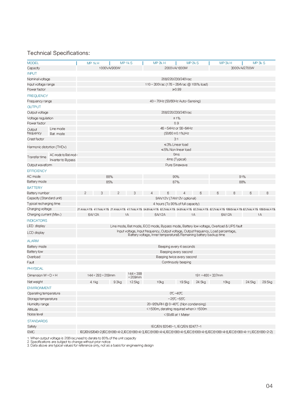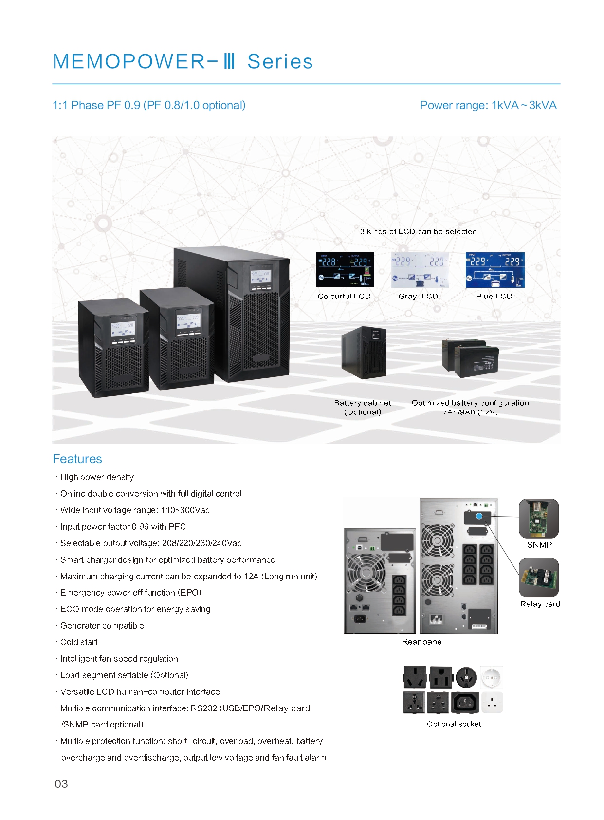 Selectable output voltage: 208 / 220 / 230 / 240Vac
